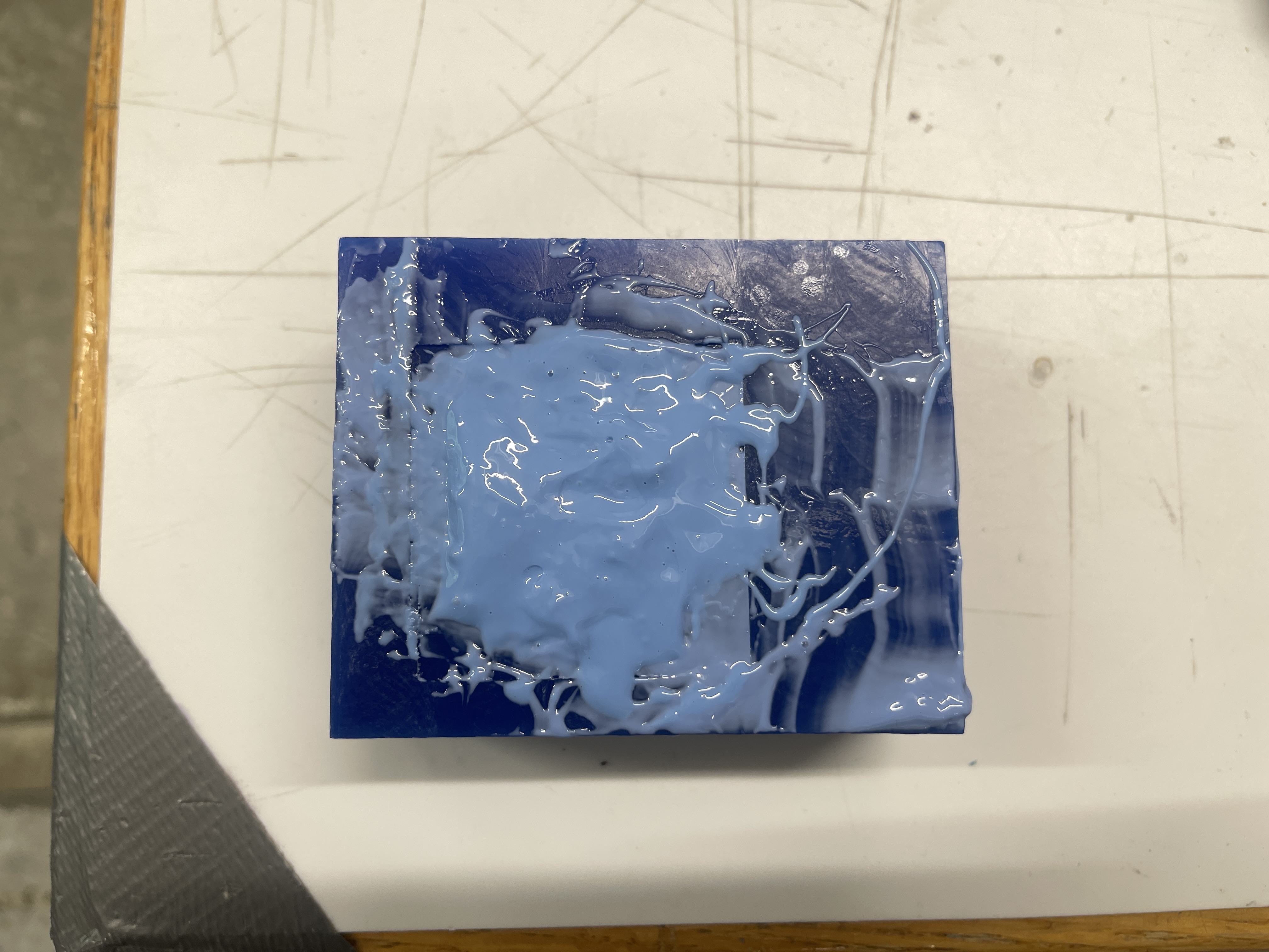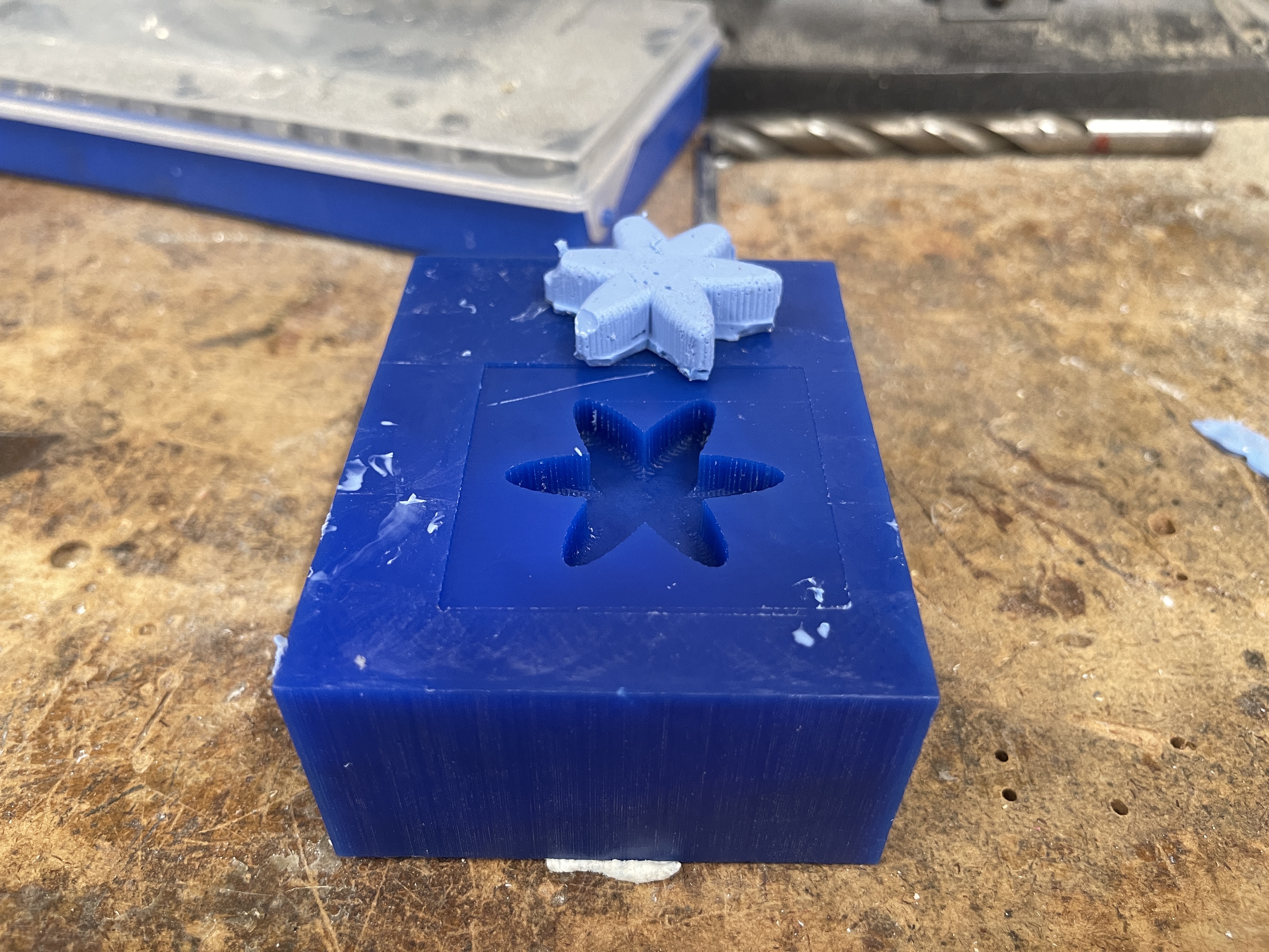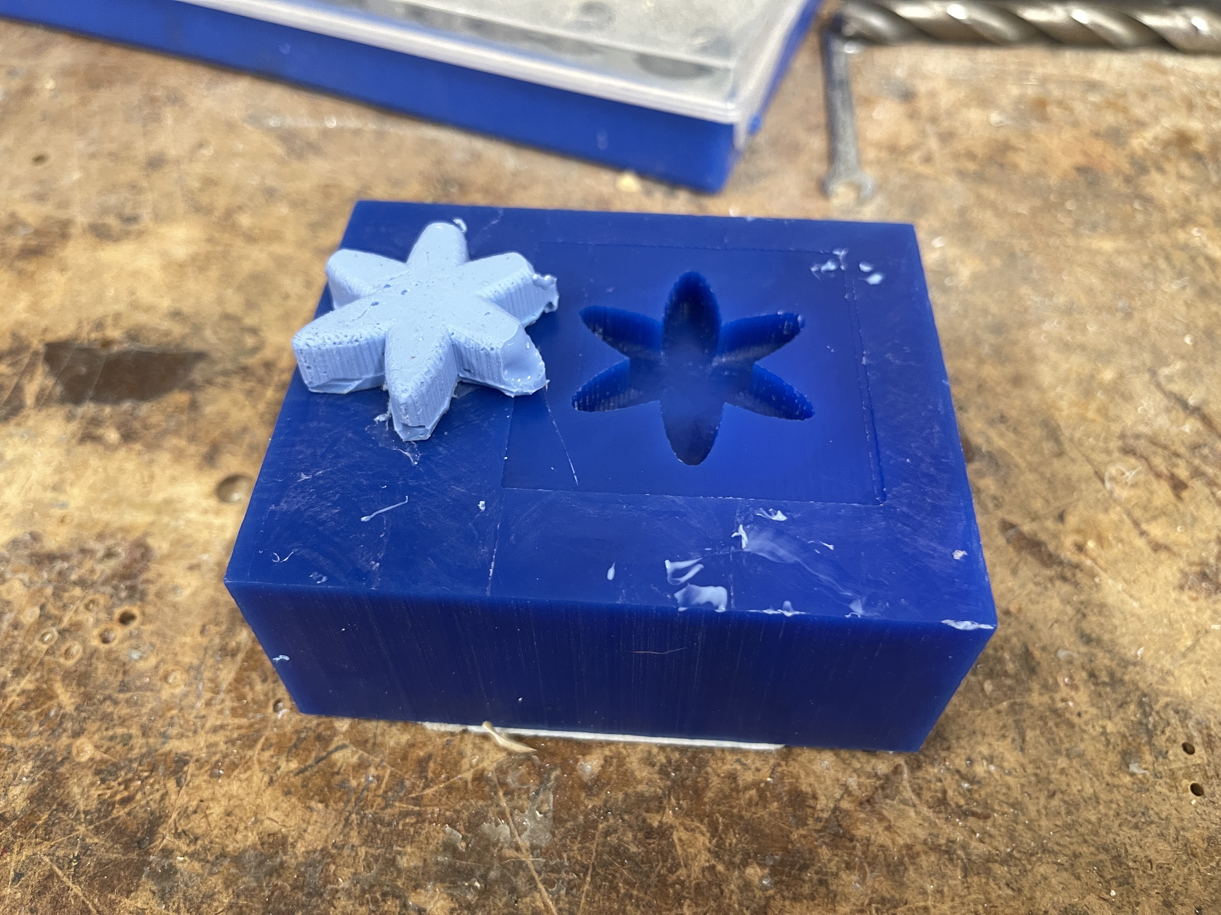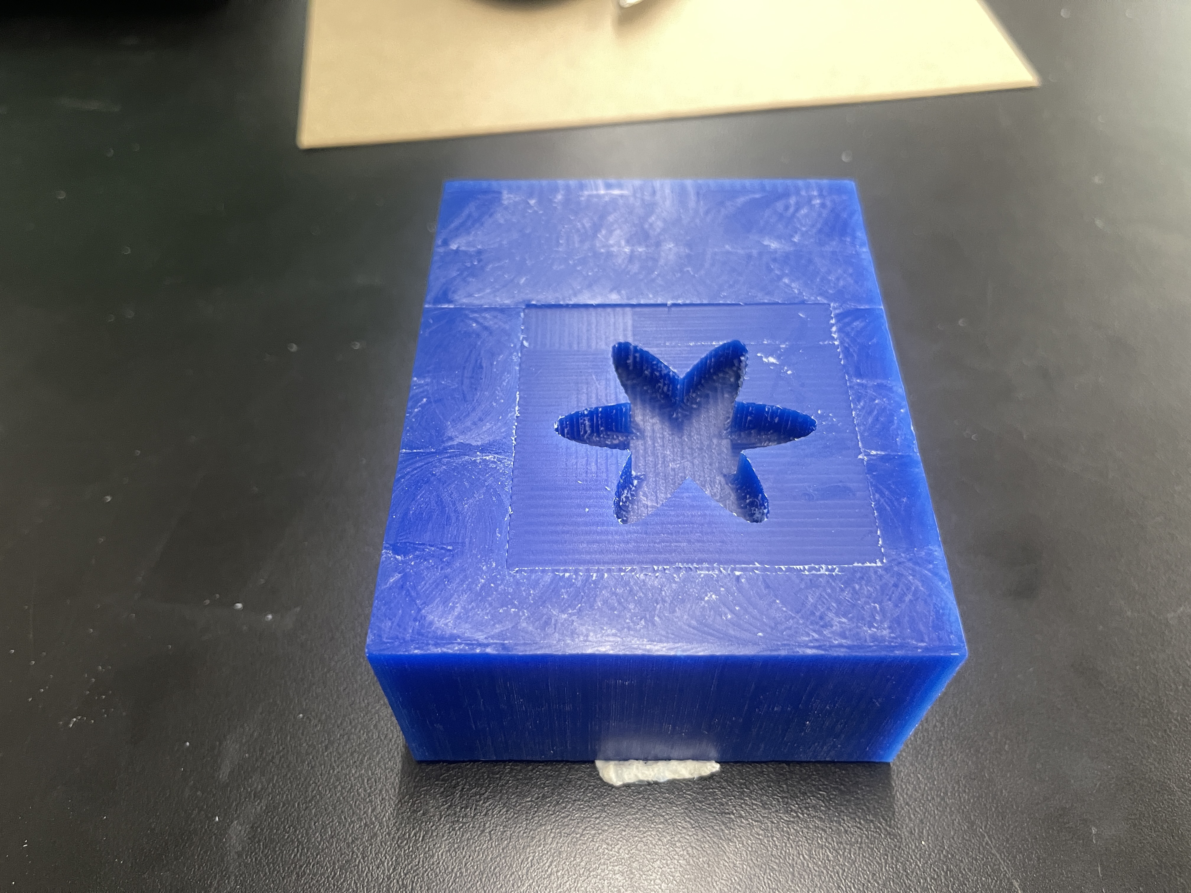 Once I successfully milled out the mold, I mixed the two casting solutions together, and used a popsicle stick to pour the final casting solution into the mold. After approximately 6 hours The waiting period was filled with anticipation, but finally, the fully cured cast was unveiled, showcasing the intricate details of the mold with a sense of pride and accomplishment. Throughout the casting process, ensuring that no air bubbles were trapped within the casting material proved to be a significant challenge. Despite my best efforts, the intricate design of the mold made it difficult to reach certain areas and dislodge any potential air pockets. To address this, I employed various techniques, such as gently tapping the mold and using a vibrating table to encourage the bubbles to rise and escape. Additionally, I carefully inspected the mold from different angles to detect any hidden air pockets that might have formed. It required a combination of patience and meticulous attention to detail to minimize the presence of air bubbles and achieve a flawless final result.
