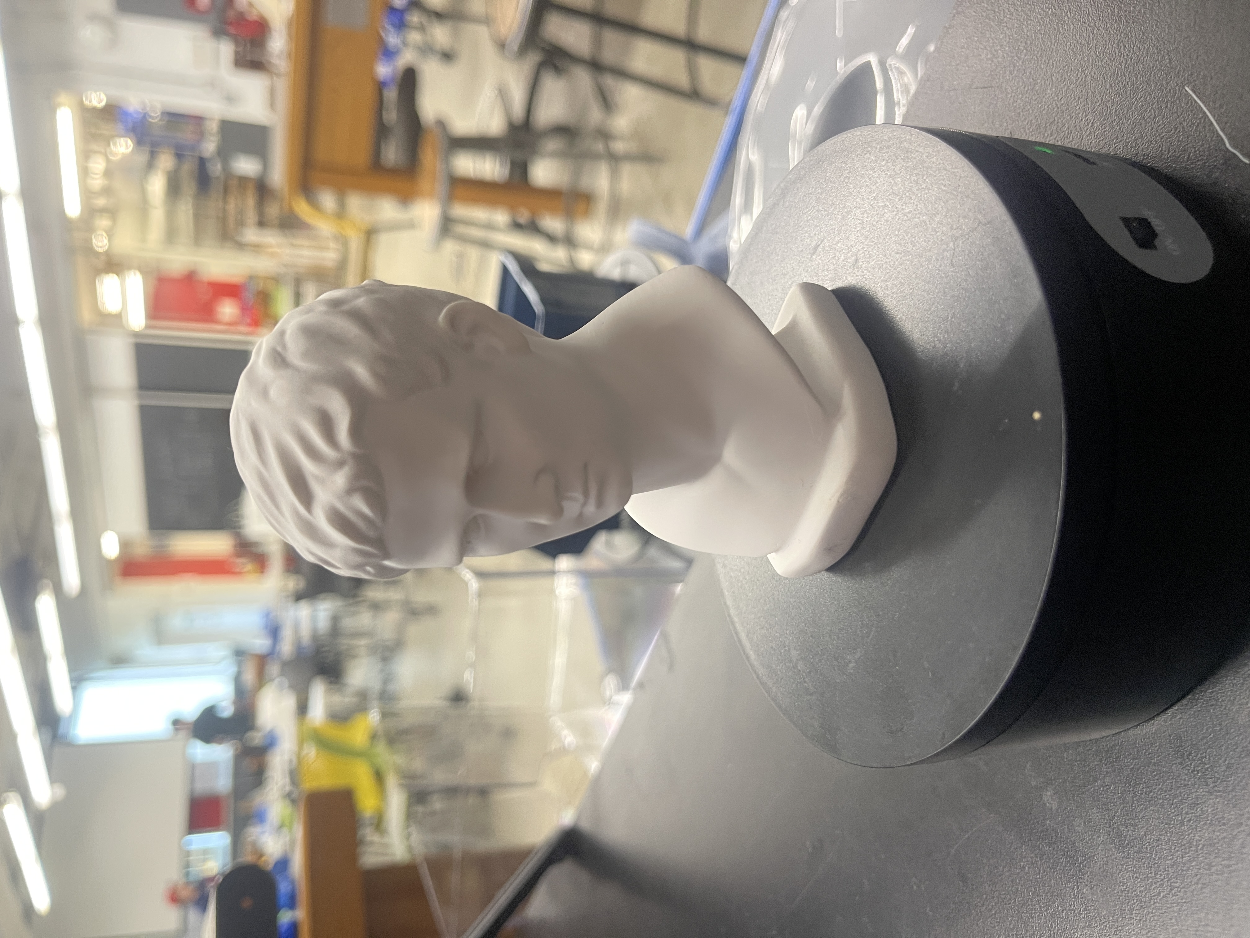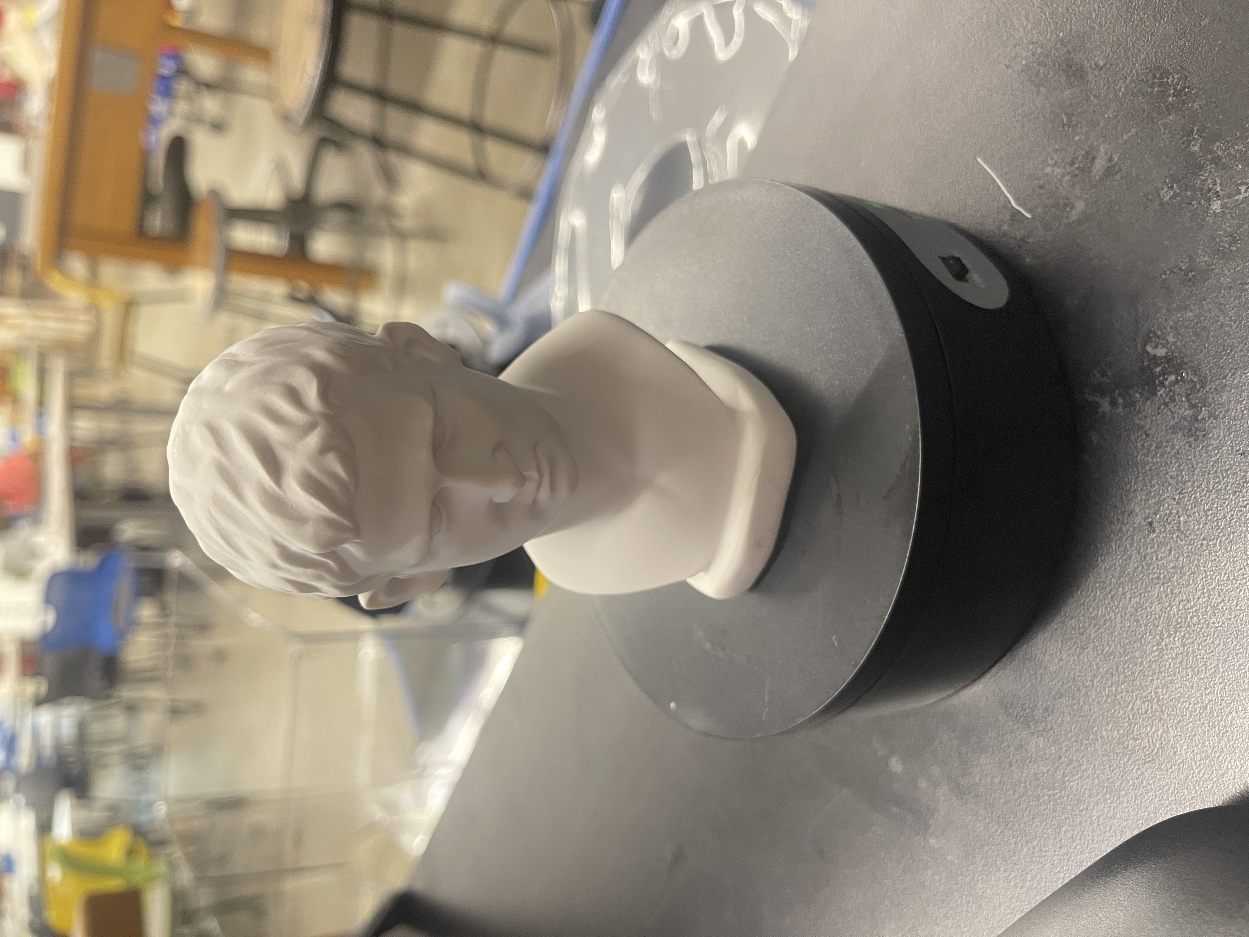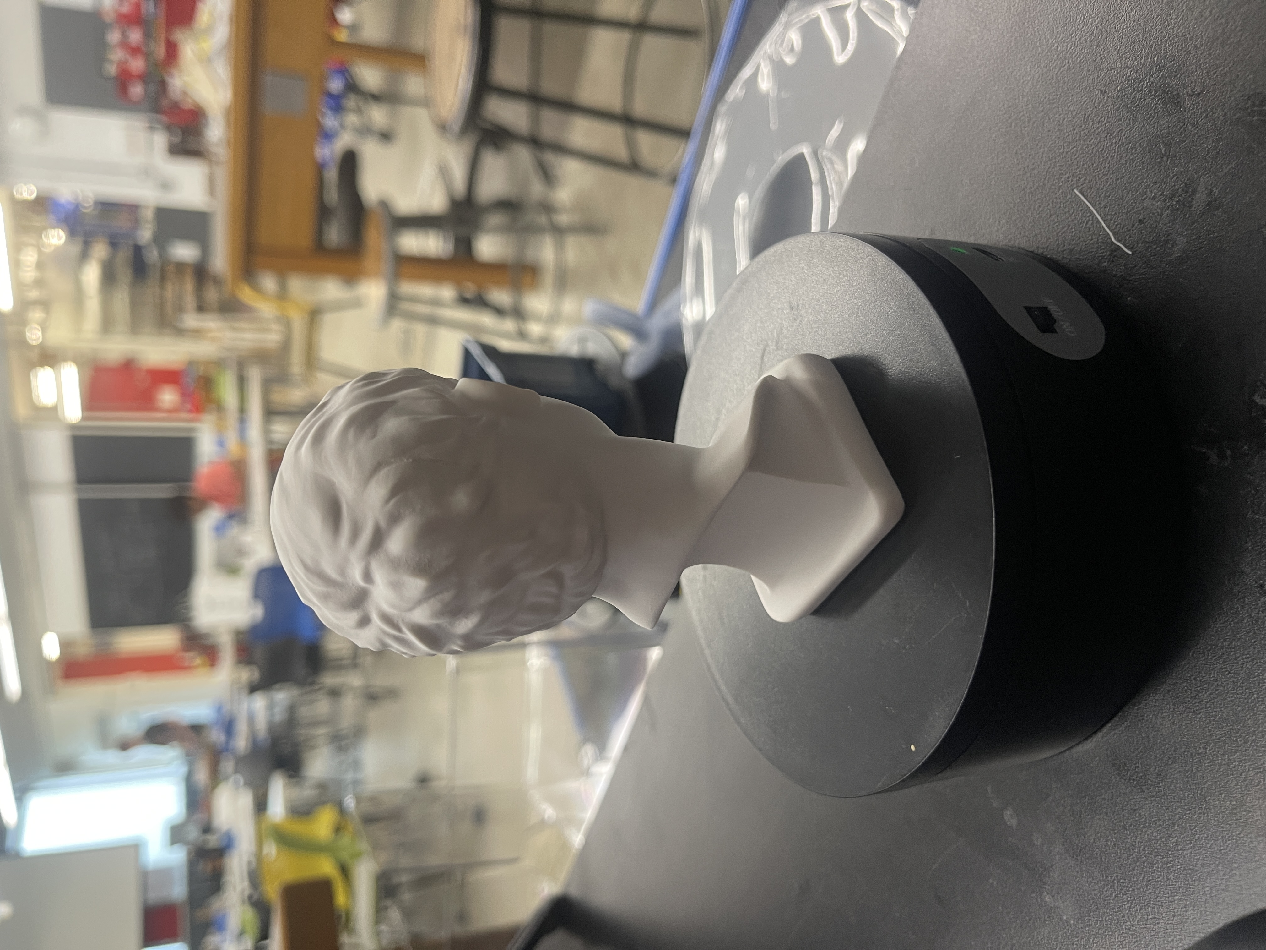 Another part of this week's assignment was to use a photogrammetry application or a scanner to scan an object within the lab to retreive a 3D model of it. Using the RevoPoint Scanner, I managed to scan a sculpture that I found within the lab. Here are a couple of pictures of the sculpture before the scan: