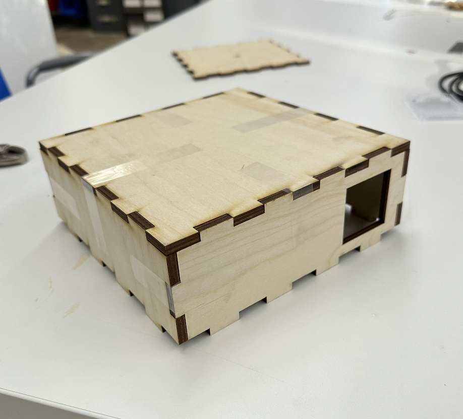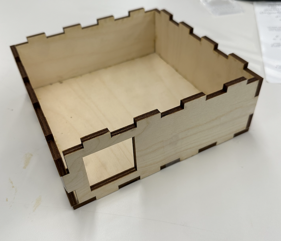 After completing the rotating object, I needed to create a structural base for the kinetic sculpture. What I initially planned was to create a box that would hold all of the components of the sculpture in place. Thus, with my knowledge in press-fit models, I constructed a box on Fusion360, and printed it out. Here is how it came out: